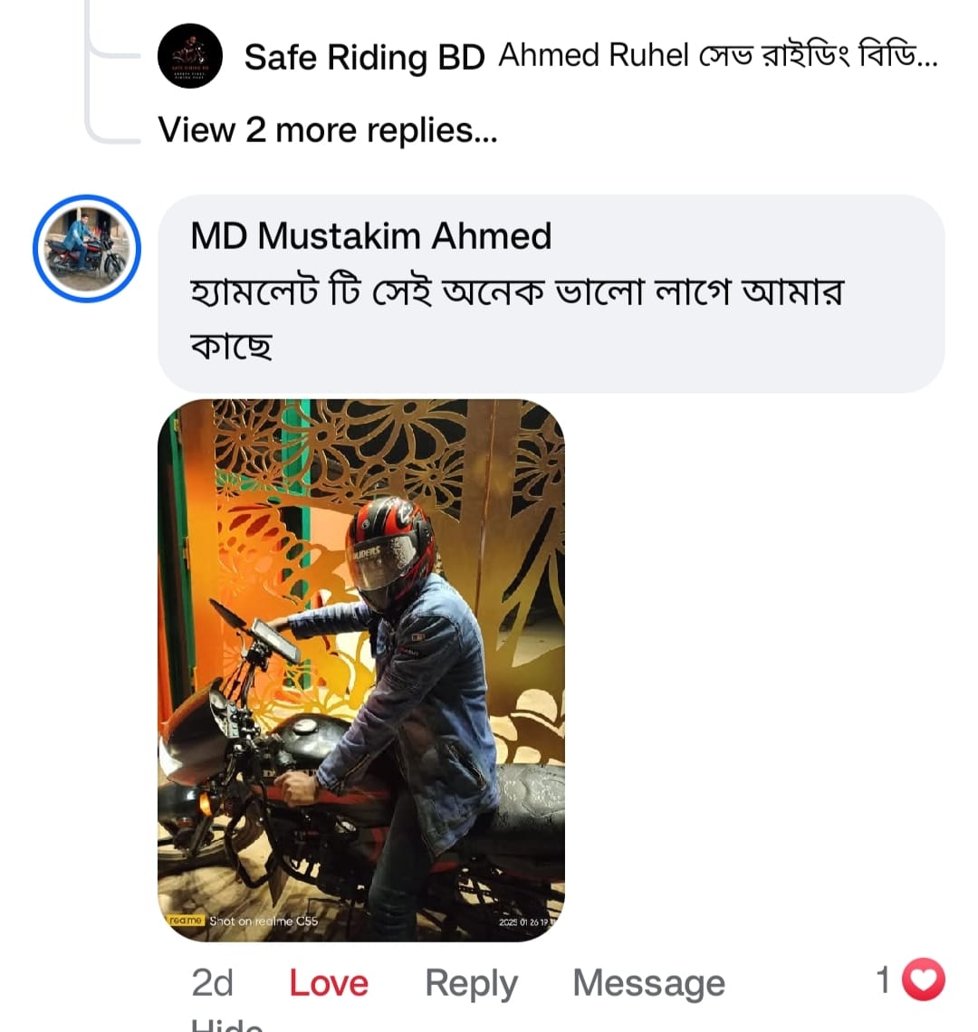 Safe Riding BD হল বাংলাদেশের একটি ট্রাস্টেড হেলমেট শপ। আমরা শুধুমাত্র BSTI ও ISI সার্টিফাইড সেফটি গিয়ার সরবরাহ করি। রাইডারের সেফটি ও কমফোর্ট আমাদের প্রথম অগ্রাধিকার।